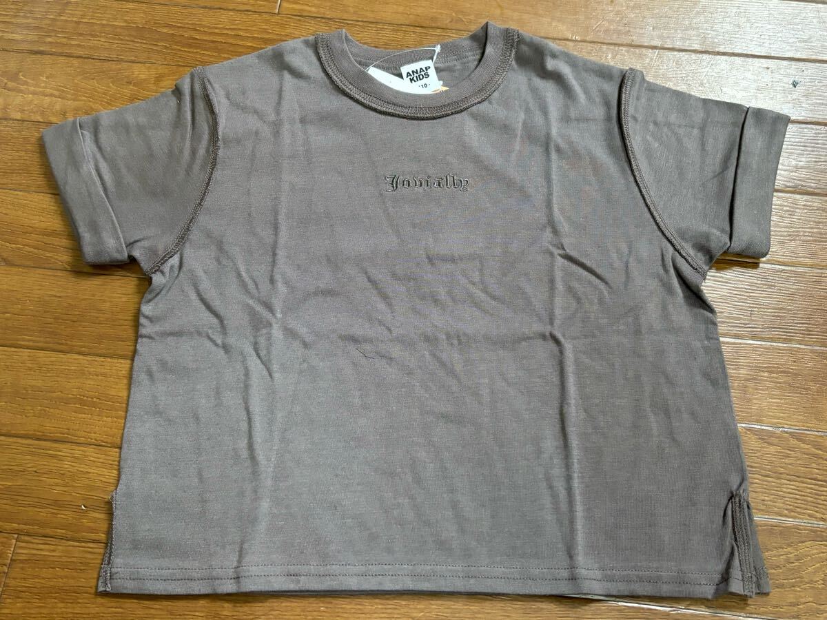 > 新品★ANAPアナップ ロールアップ刺繍半袖Tシャツはブラウン★110