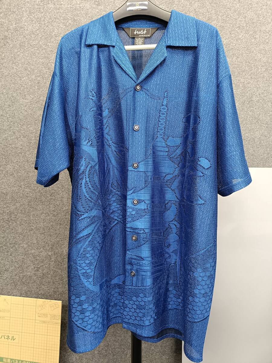 - ★透け感シャツ ブルー 半袖シャツ 柄シャツ メンズシャツ sizeXL