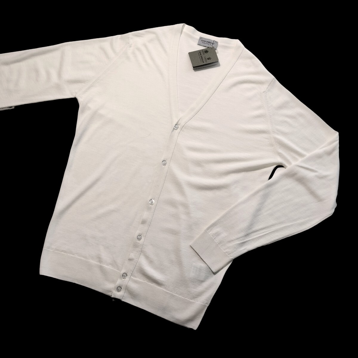 - メンズ L ジョンスメドレー 最高級メリノウール カーディガン PETWORTH オフホワイト SNOW WHITE JOHN SMEDLEY イギリス製★