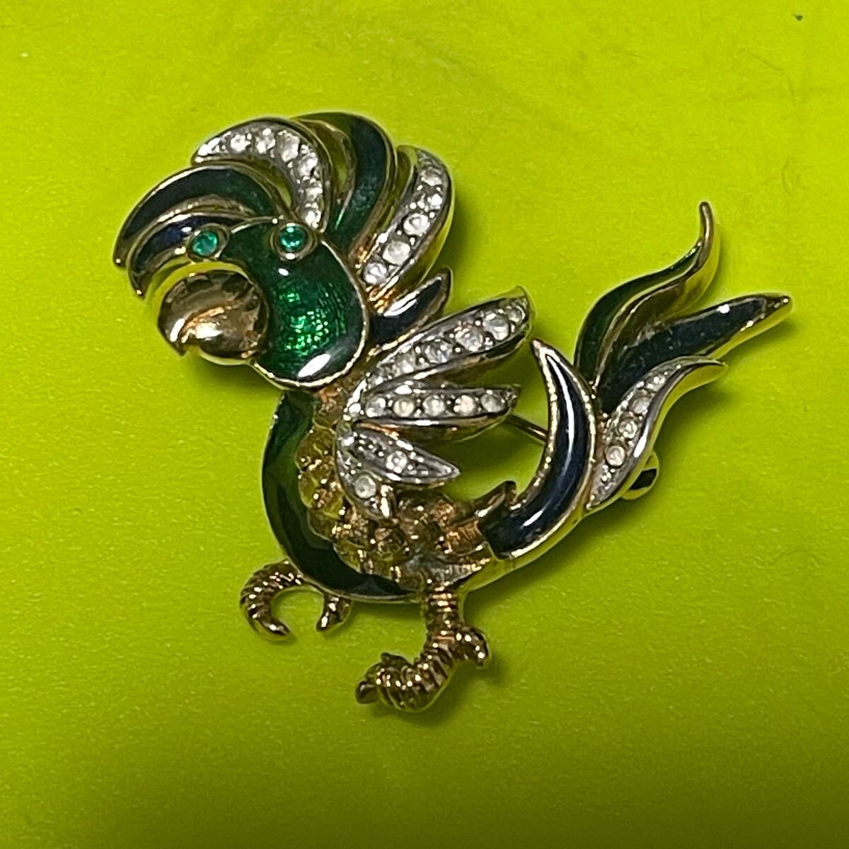 - ヴィンテージ パロット オウムブローチ 鳥 グリーン バード インコ 小鳥