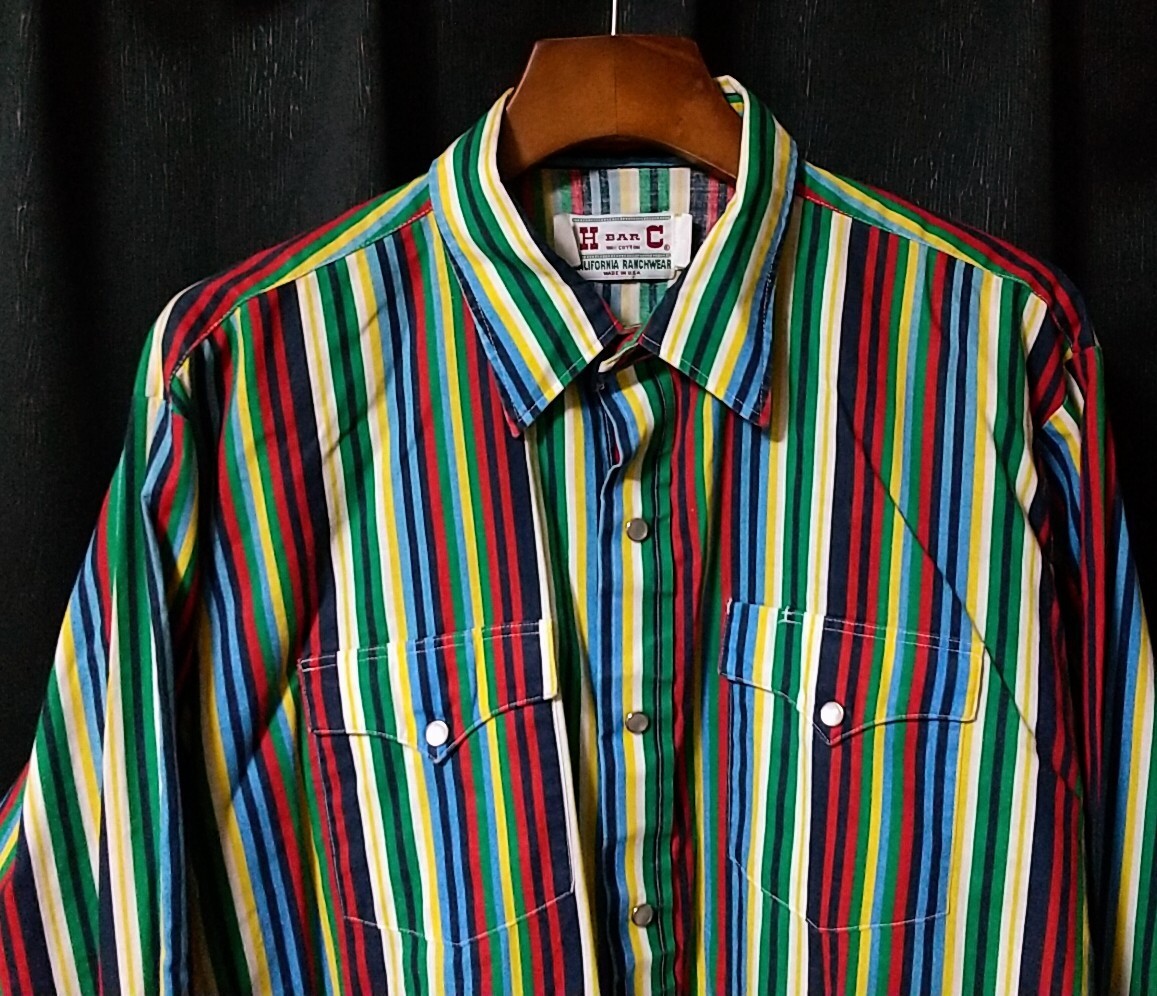 - H BAR C エイチバーシー ウエスタン 長袖シャツ ストライプ マルチカラー 17.5 XL USA製 Wrangler ROCKMOUNT Panhandle slim Roper