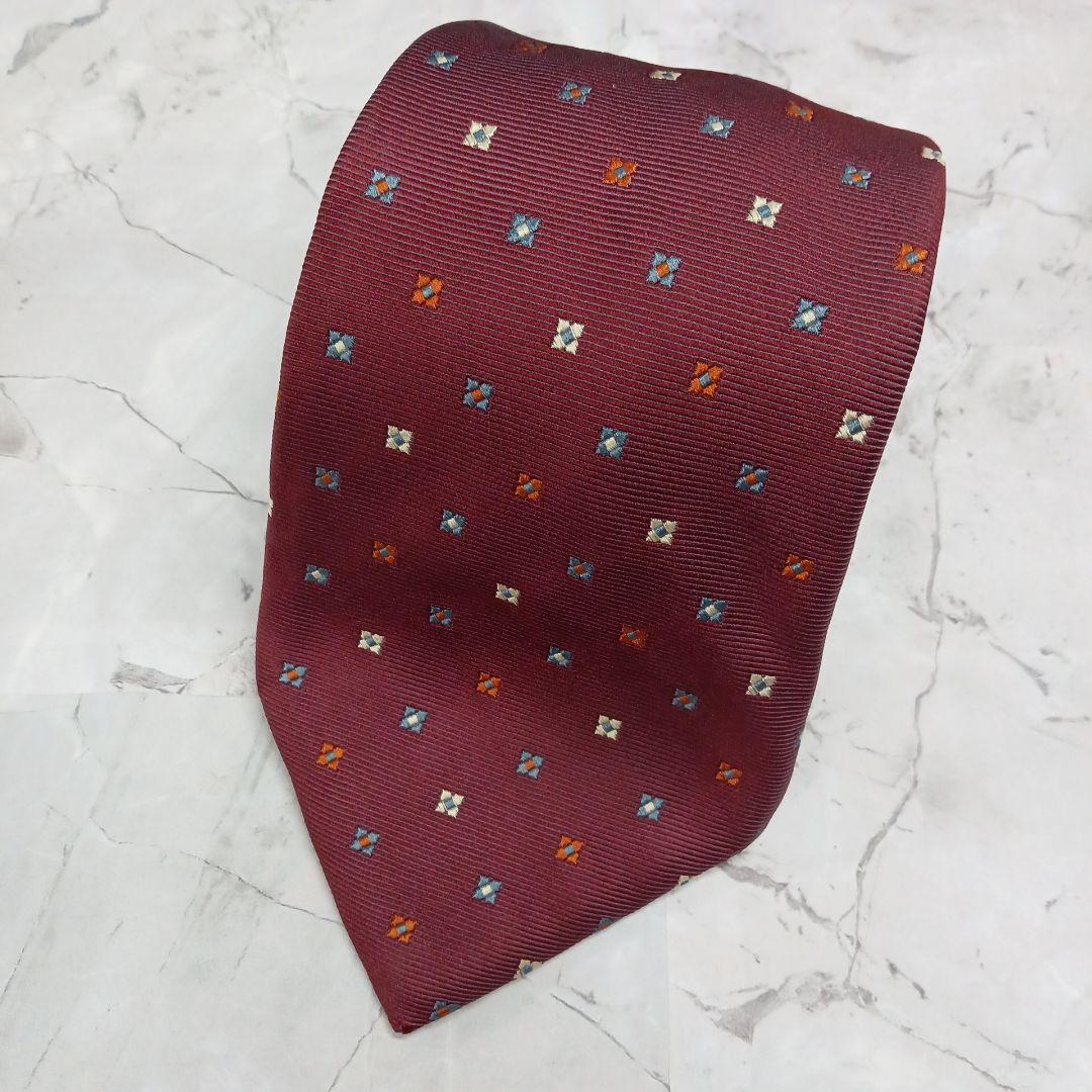 - シップス ネクタイ えんじ 小紋柄 シルク100% 絹 【n1150】