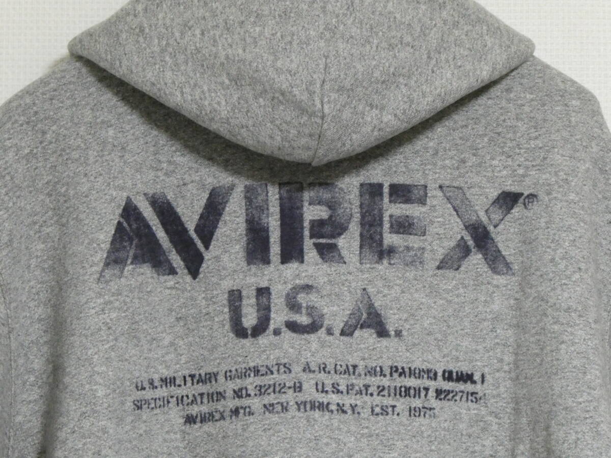 > タグ付未着用 AVIREXアヴィレックス フーデットスウェット ジップパーカー 2XLサイズ グレー 杢 裏起毛 ヴィンテージ風ミリタリーデザイン