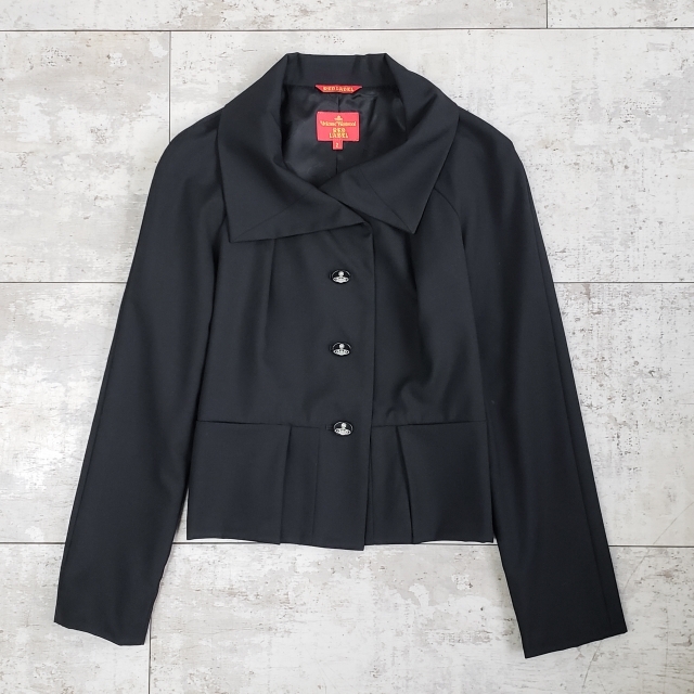 > ヴィヴィアンウエストウッド レッドレーベル 変形襟 ウール ジャケット 2 日本製 ブラック ラグランスリーブ VIVIENNE WESTWOOD RED LABEL