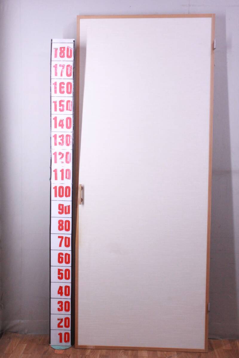 > 木製ドア 無垢板/和紙(壁紙)仕様 和室用ドア 取り付け金具付き 無垢板部磁石受け金具欠品 詳細不明 中古現状品■(Z3460)