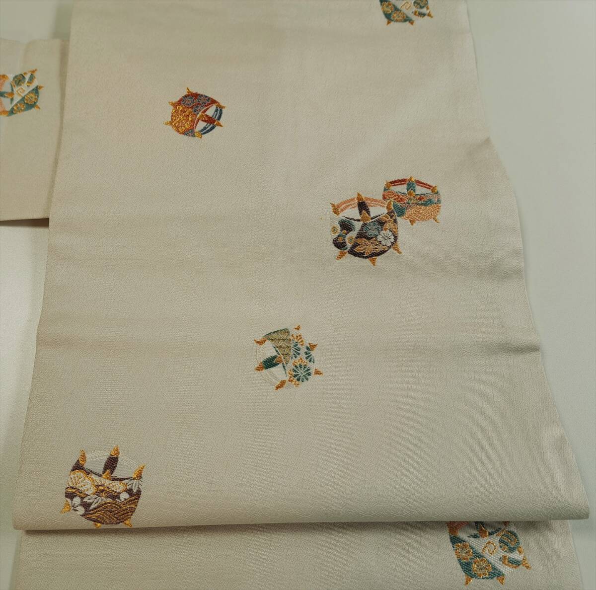 - 即決■着物の越田■幅31長さ368 正絹 名古屋帯 名古屋仕立て 糸巻 西陣織 上品 かわいい お太鼓柄 ■ふ07J15
