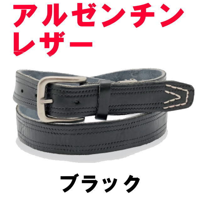 - ブラック 黒 アルゼンチンレザー ベルト ビンテージ調 手揉み加工 68