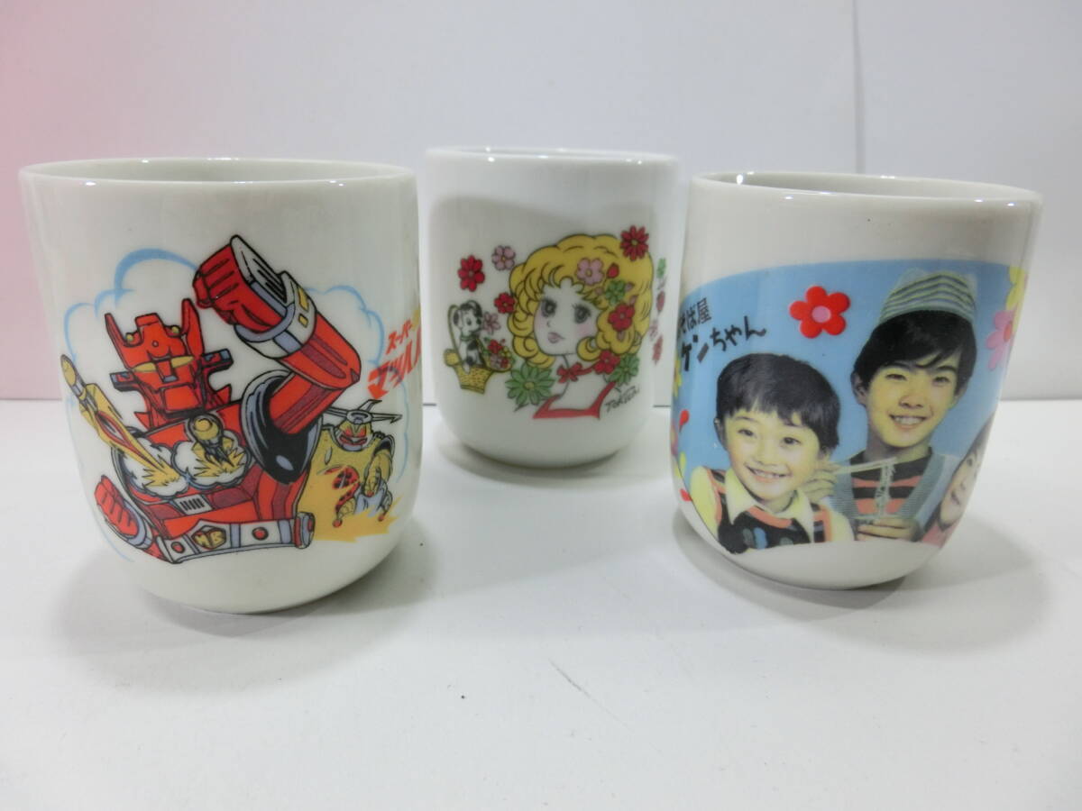 - 湯呑★レア『おそば屋ケンちゃん』『スーパーロボット マッハバロン』金正陶器.日本製/『女の子.犬』陶器.子供/昭和レトロ/3個.まとめて