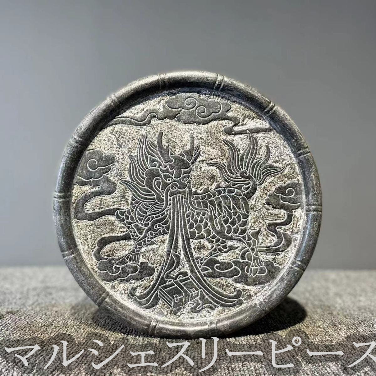 - 青石彫刻 麒麟送福 ドライティー用石鼓茶盆 中国風レトロ平彫り 極細工 古美術 置物 装飾 収蔵 コレクショ