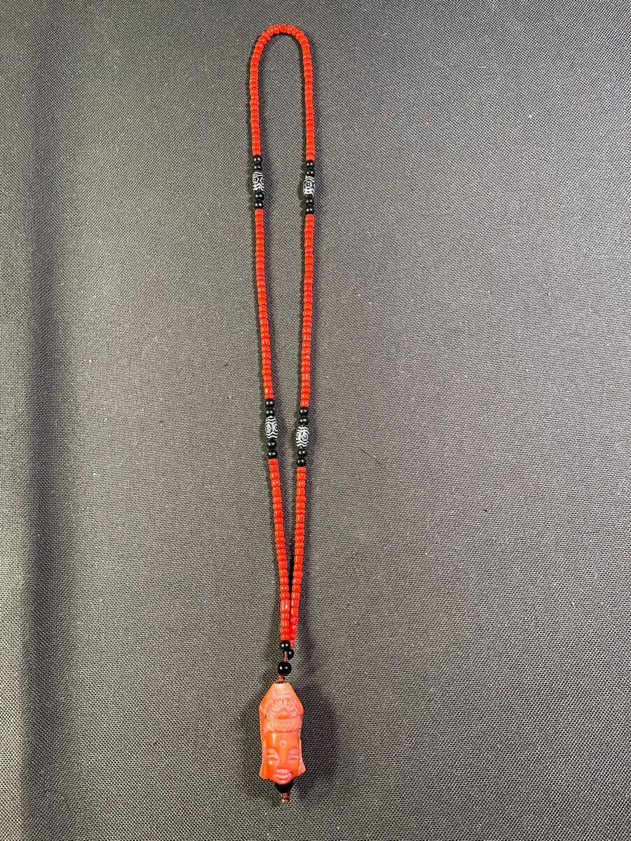 - 珊瑚 サンゴとビーズネックレス 観音様彫刻あり チベットネックレス