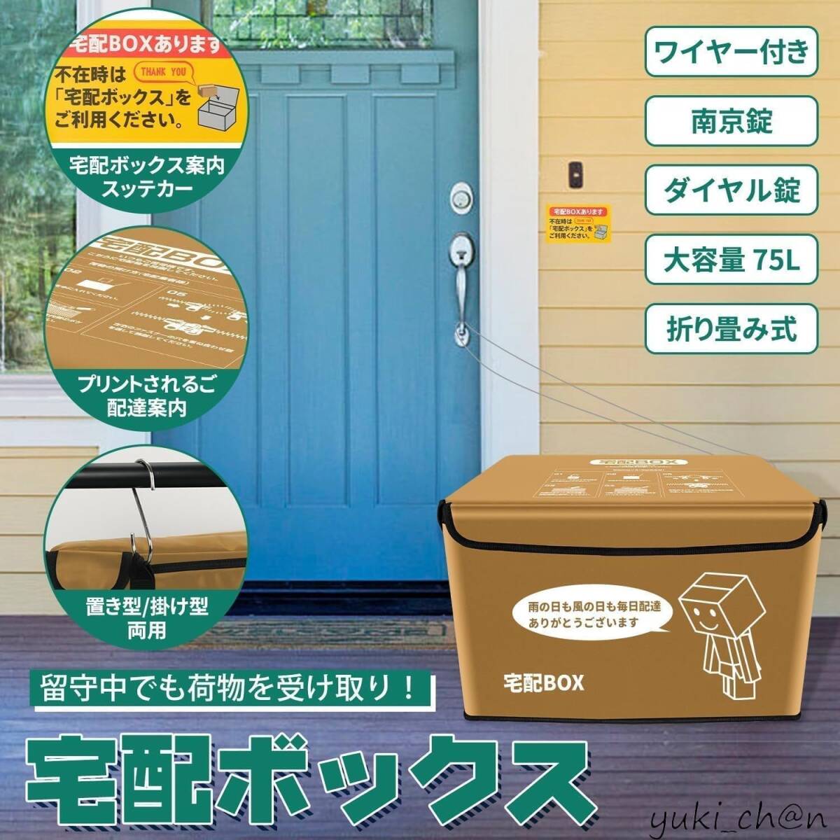 - 宅配ボックス 配達ボックス 置き型 折りたたみ式 掛け型両用 防水 保冷 大容量 75L 盗難防止 南京錠 ダイヤル錠付 ブラウン