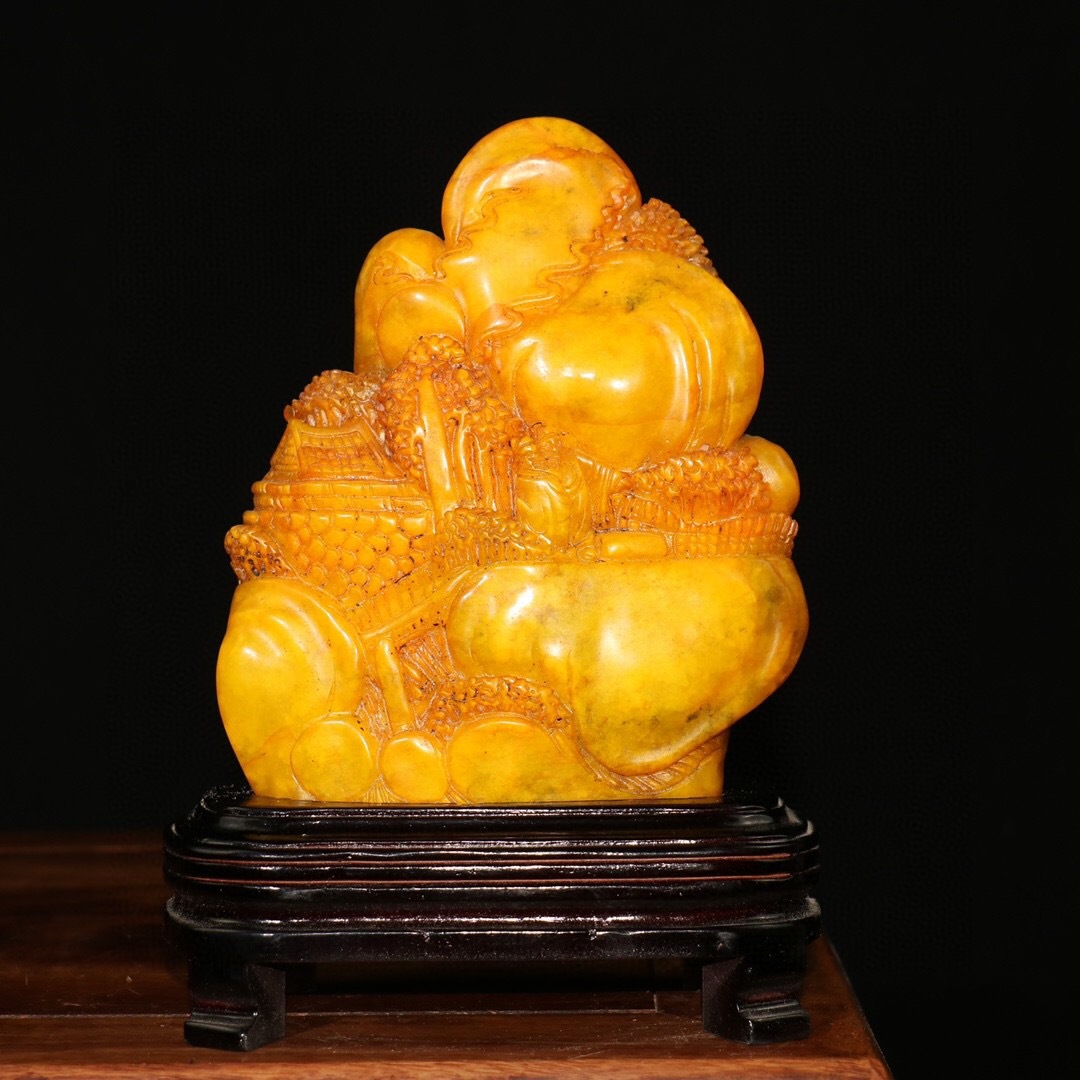 - ▽鴻▽ 寿山石 田黄石 細密彫 仙人指路紋印章 置物 古賞物 中国古玩 中国古美術