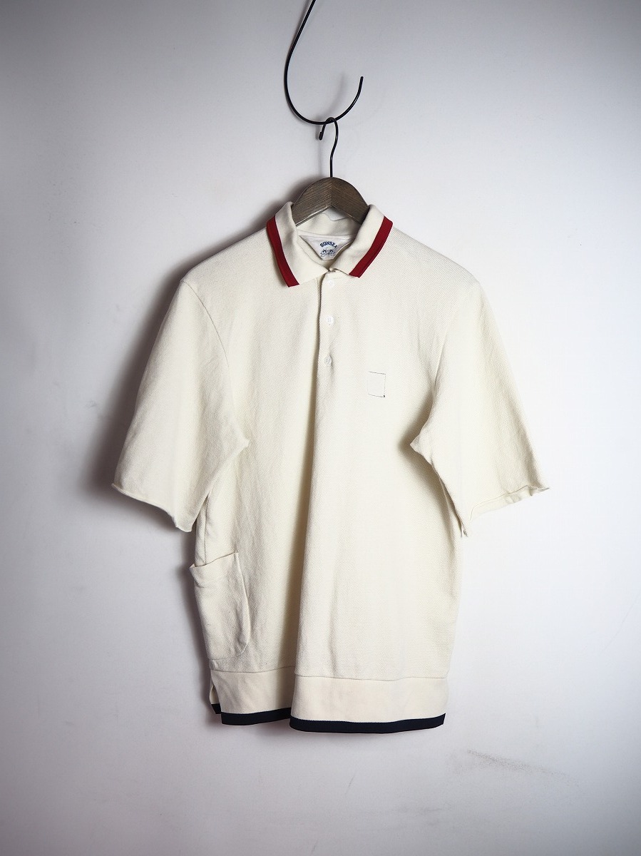 - 美品 23SS SUNSEA サンシー A2705 Tennis POLO 半袖 テニス ポロ リブ シャツ アイボリー 白系 サイズ3 318P▲