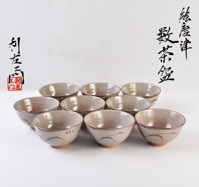 - 茶道具 武村利左衛門造 絵唐津 数茶碗 九客 共箱 MXRJ