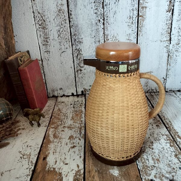 > 70-80s ヴィンテージ ZOJIRUSHI 象印 ラタン 籐 編み 魔法瓶 ポット 1L ナチュラル キャンプ ビンテージ アンティーク レトロ 古道具