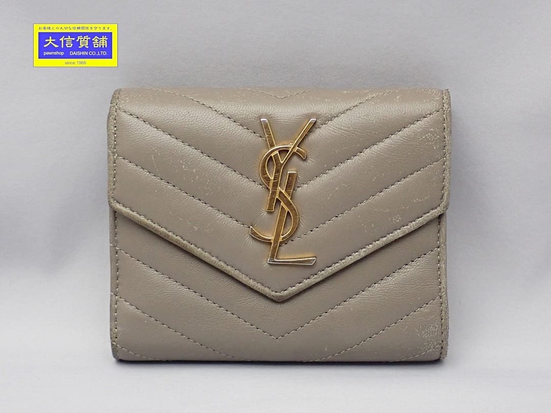 - SAINT LAURENT サンローラン 三つ折り財布 403943 カサンドラマトラッセ コンパクト ラムスキン グレージュ 中古B 【送料無料】 A-8811