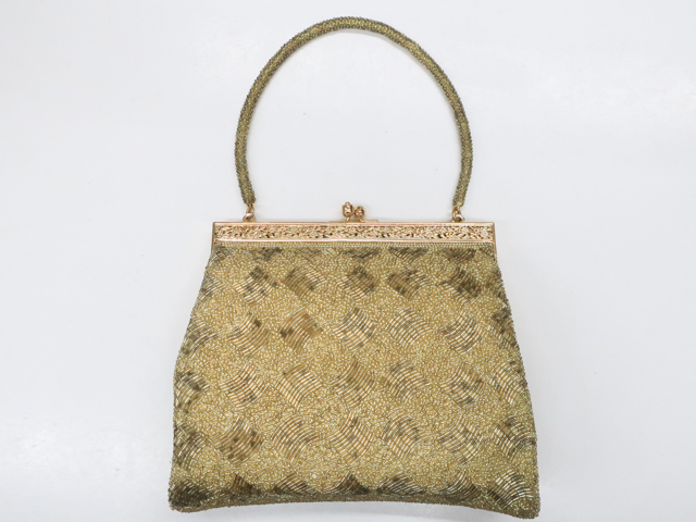 - 《古美術京松》【着物】和装小物 ビーズバッグ r7w01-3