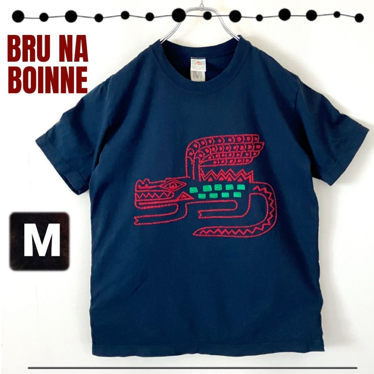 - ブルーナボイン BRU NA BOINNE★Tシャツ★羽根のはえたワニ★古代絵風★メンズM