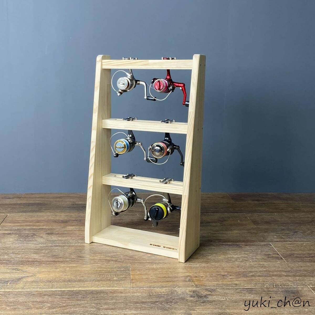 - リールスタンド リール収納 リールディスプレイ リール専用 日本製 Mサイズ ナチュラル 14 x 33.5 x 59cm