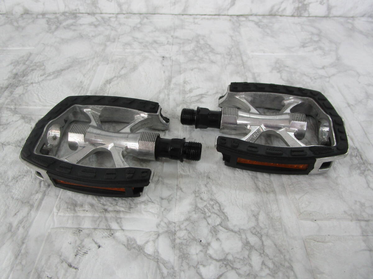- W.25.D.11 TO ☆ フラットペダル メーカー不明 C-235 ブラック×シルバーカラー ペア USED ☆
