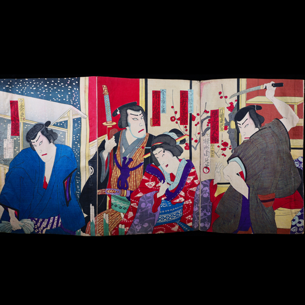 - ◇雅◇ 真作保証 楊洲周延 錦絵 歌舞伎絵 武者絵 役者絵 浮世絵 木版画 3枚続 大判 摺物 /FT.25.3 [H120.36] QPO72