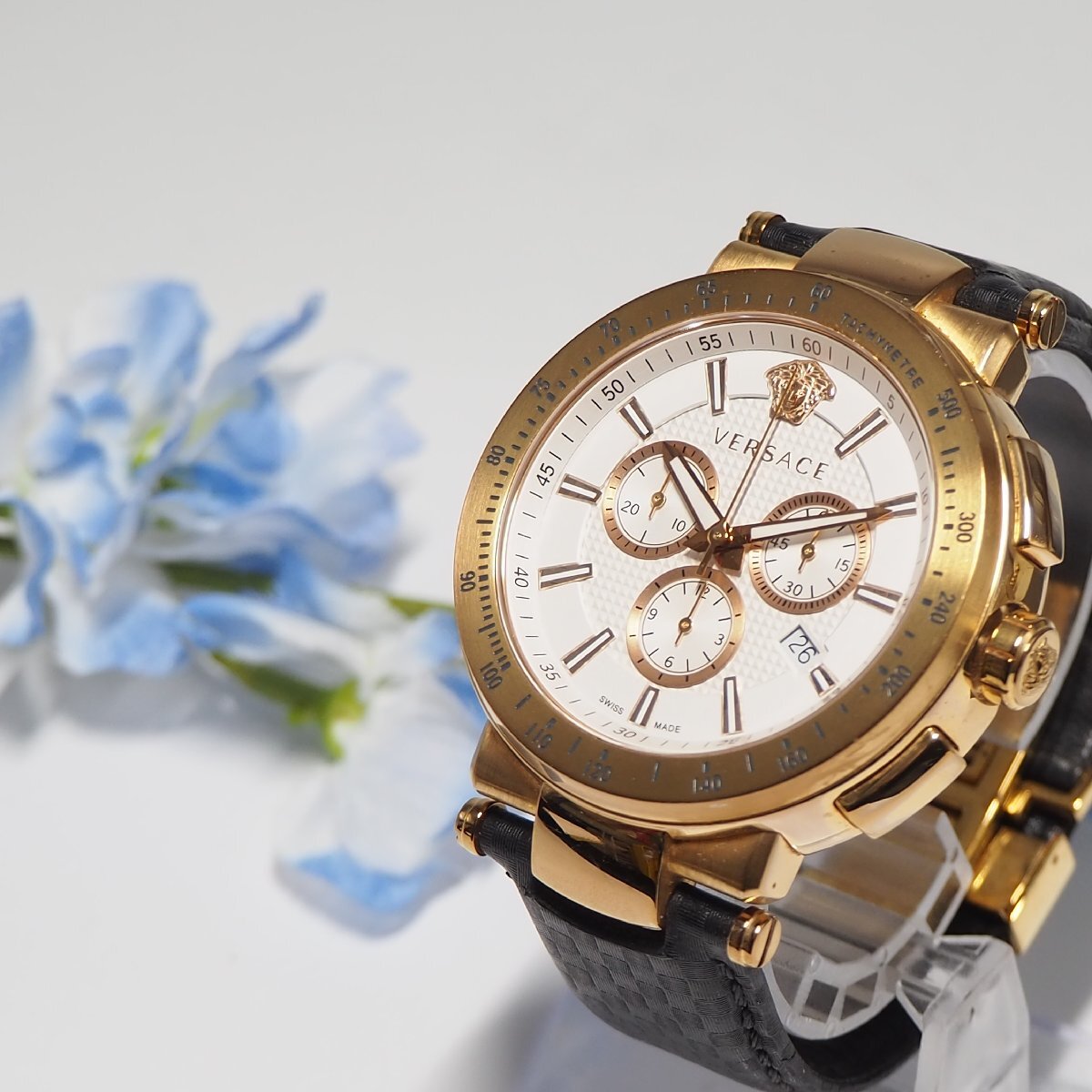 - ヴェルサーチ VERSACE 革ベルト クロノグラフ メデューサ メンズ 腕時計 ゴールド F668 中古