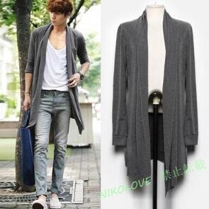 - 新品 メンズ カーディガン 薄手 ニット ロングカーディガン 棉 コットン 長袖 グレー M-2XL