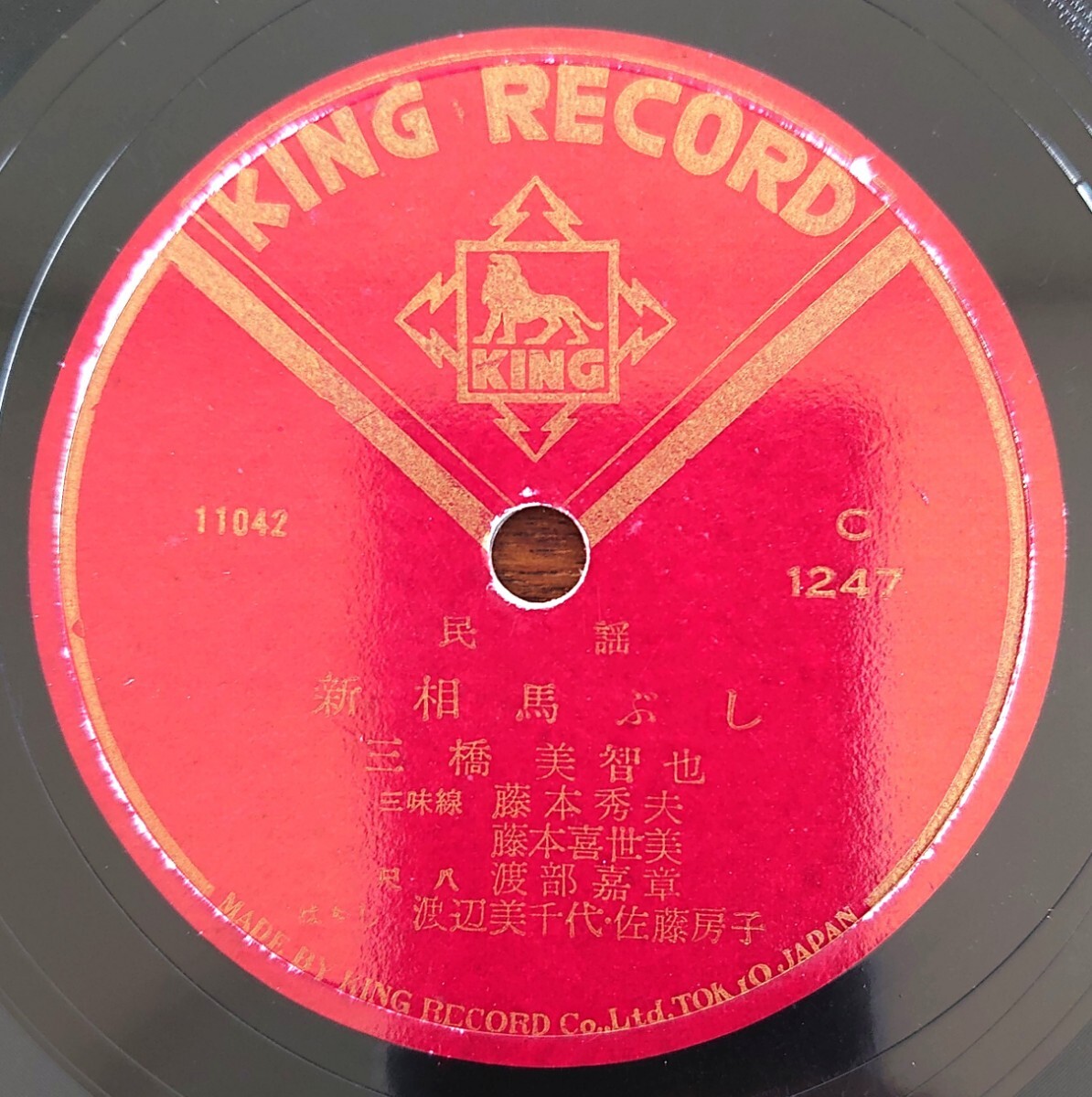 - 【SP盤レコード/薄ヒビ】KING RECORD C-1247 民謡/新相馬ぶし/いやさか音頭/三橋美智也