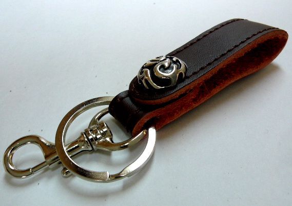 - 牛革ベルトループ キーホルダー こげ茶/silver925コンチョ付(トライバル柄ボタン)