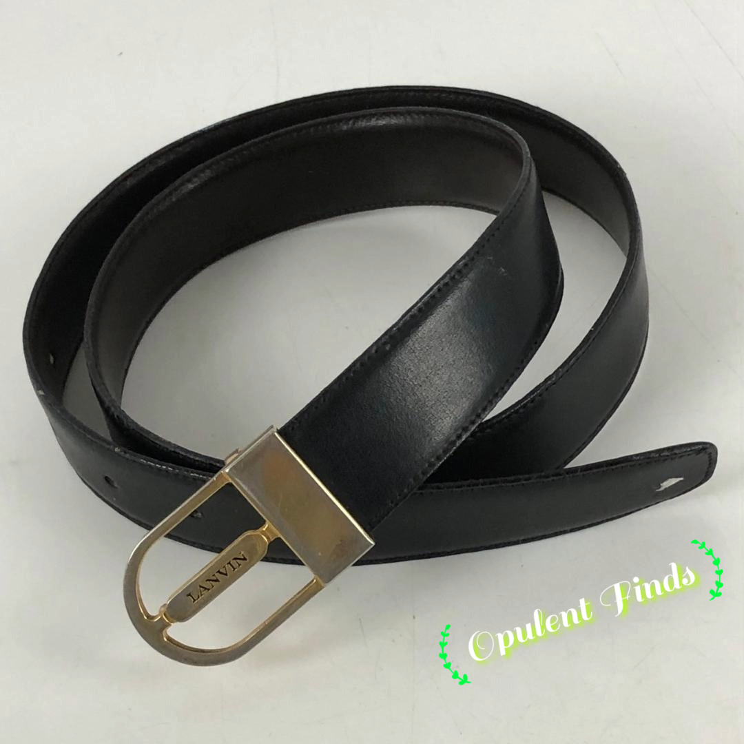 - LANVIN ランバン ブラック レザー ベルト バックル メンズ ブランド ゴールド 小物 ロゴ入り フォーマル ビジネス 中古品 送料無料 8