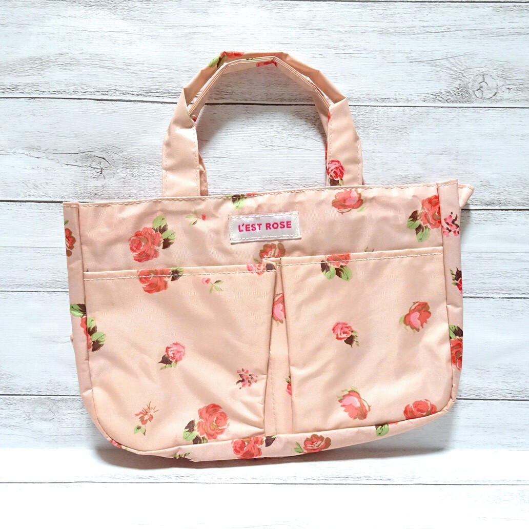 - 2360 送料無料 未使用 ステディ付録 レストローズ バッグインバッグ ローズ柄 約17×26×4cm / ミニバッグ ポーチ steady