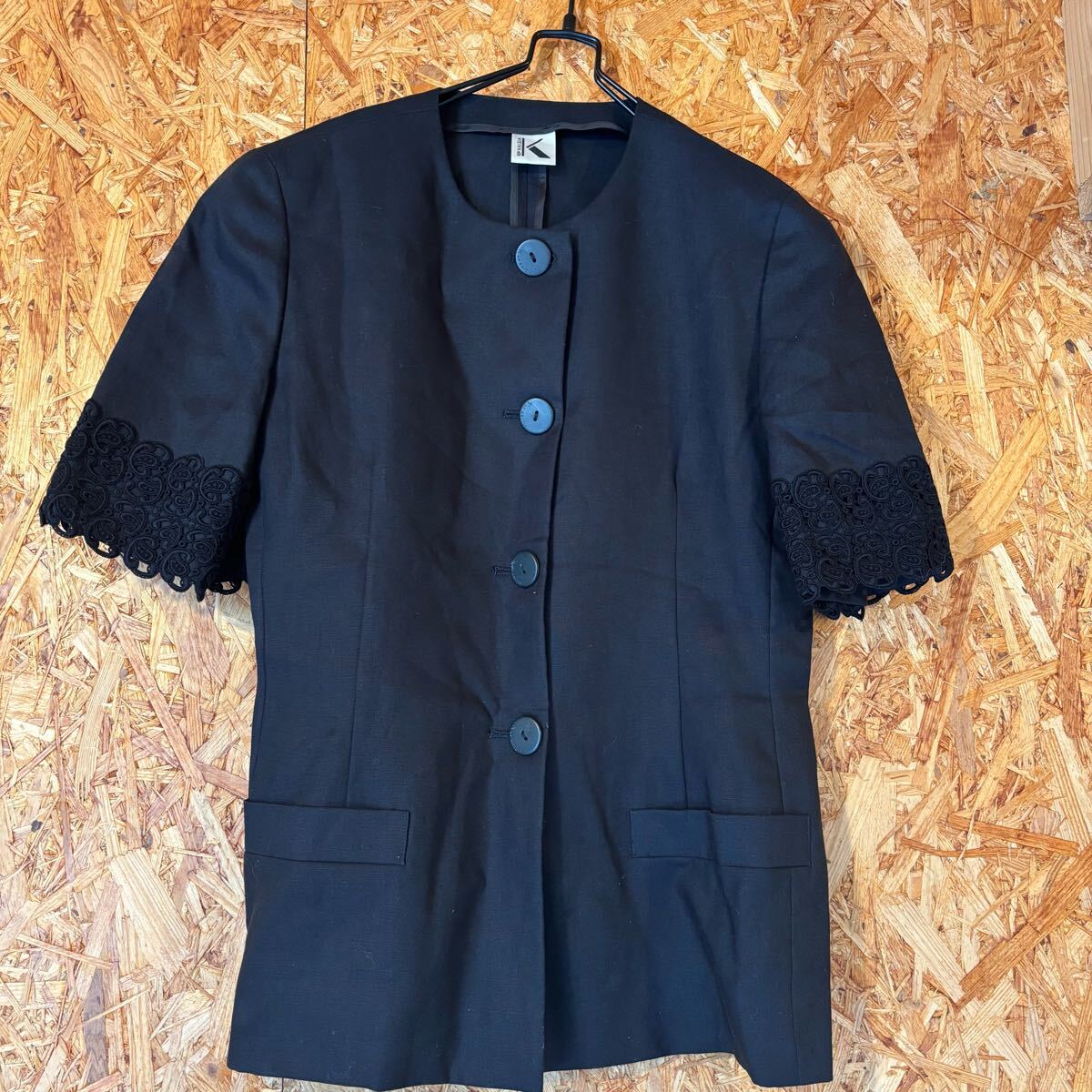 > 美品 KRIZIA ジャケット 半袖ジャケット 刺繍 前ボタン お洒落 肩パッド リネンジャケット レディース 4201 ブラック