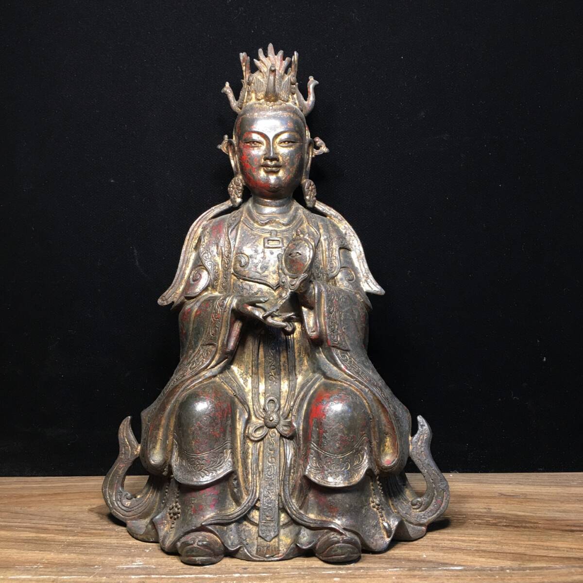 - 友人館蔵 古銅彫 王母娘娘 文案置物 珍蔵品 極細工 古賞物 古美味 東洋彫刻 時代物 骨董 中国古美術