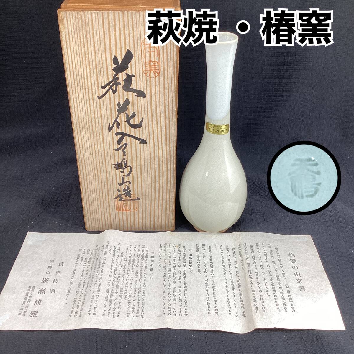 > 【未使用・保管品】萩焼 椿窯 天鵬山 廣瀬淡雅 花器 花瓶 フラワーベース 白系 ホワイト 高さ約22cm 口径約3cm 茶道 (H1579)