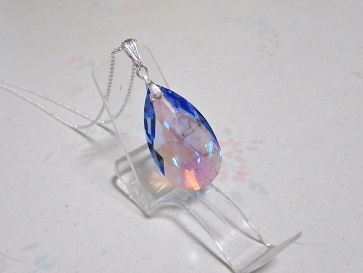- ミディアムサファイヤ・ブルーオーロラスワロフスキーの雫シルバートップ