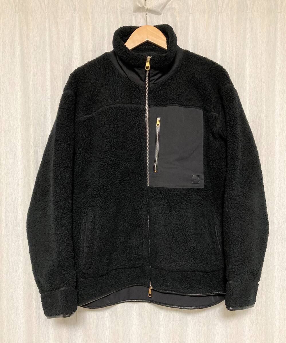> [Dunhill] 22AW 定価150,700 ボアフリース レザー切替 トラックジャケット L ブラック イタリア製 ダンヒル
