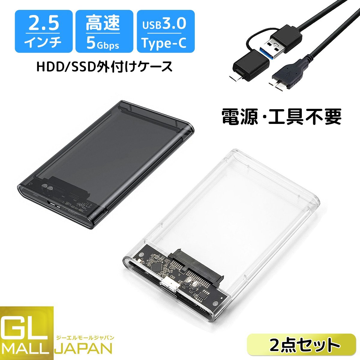 > 2個入り【クリックポスト】2.5インチ外付けHDD SSDケース USB Type-C変換アダプター 2in1ケーブル 5Gbps データ転送 2色 ●送料無料