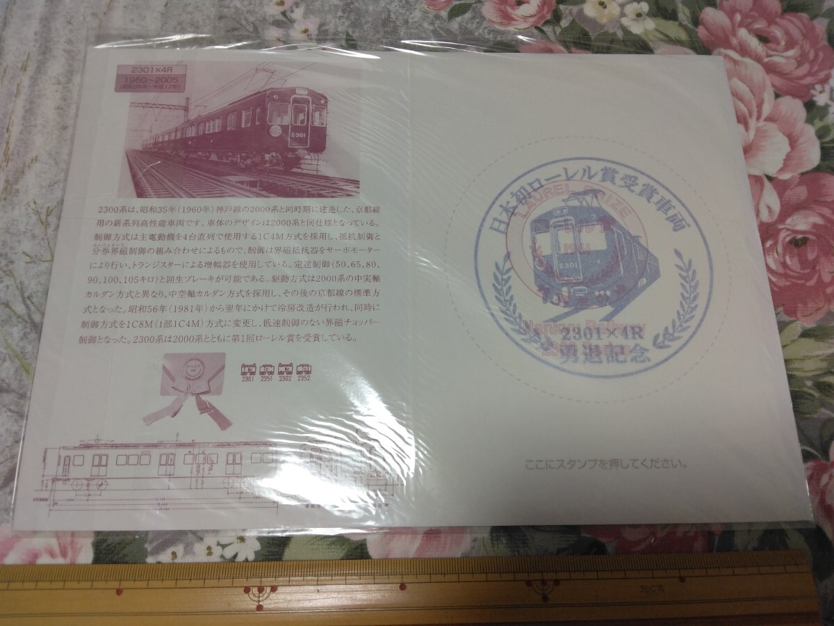 - 送料込み! 阪急電鉄「2301 勇退記念」スタンプ台紙 (阪急・さよなら2300系・ローレル賞・鉄道・阪急電車・私鉄