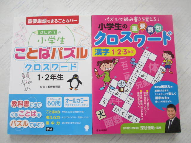 - はじめての小学生ことばパズルクロスワード1・2年生☆小学生の重要語句クロスワード(漢字1・2・3年)☆古本☆2冊セット