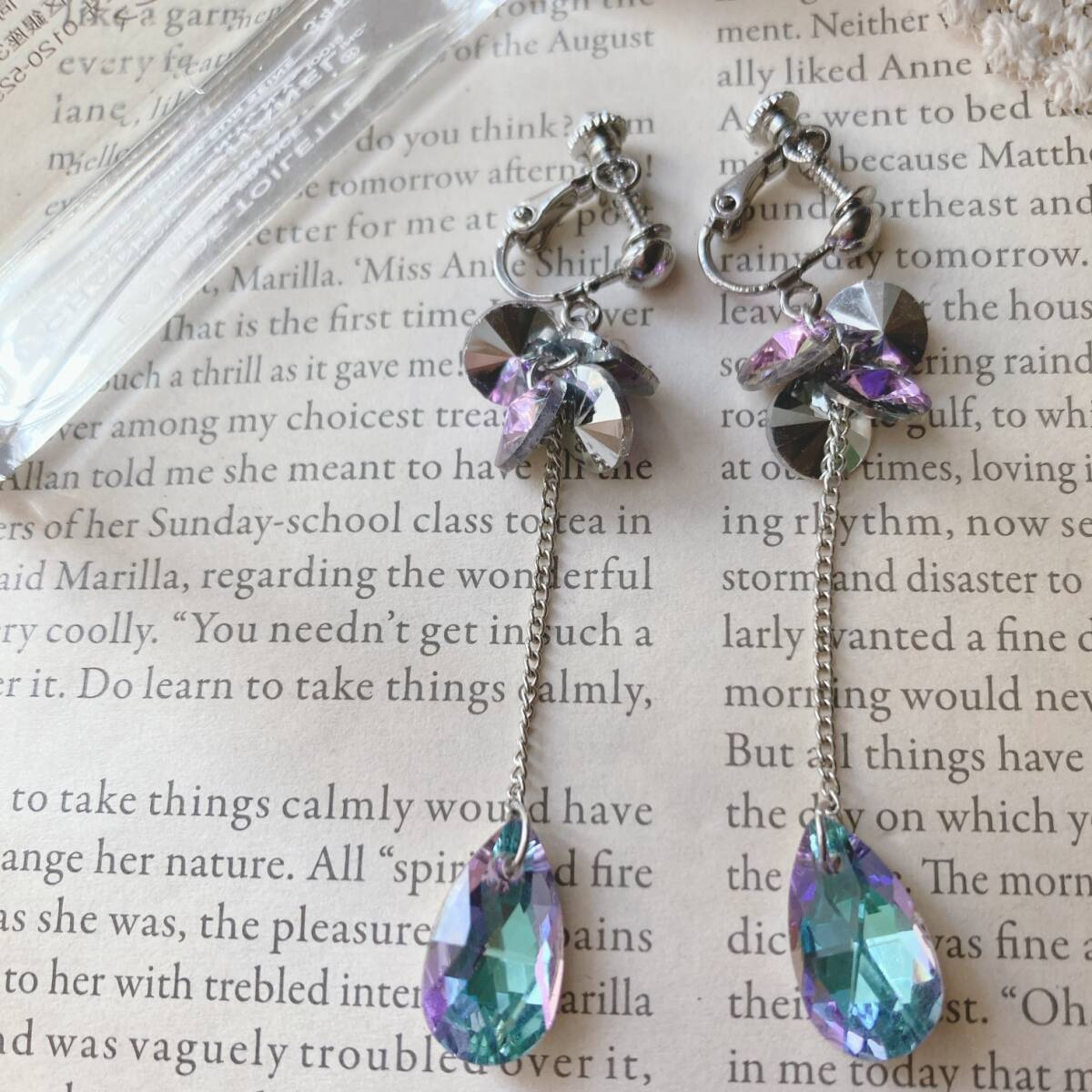 > 新品◇イヤリング スワロフスキー ドロップ パープル ブルー キラキラ ☆Vintage jewelry accessories R0404