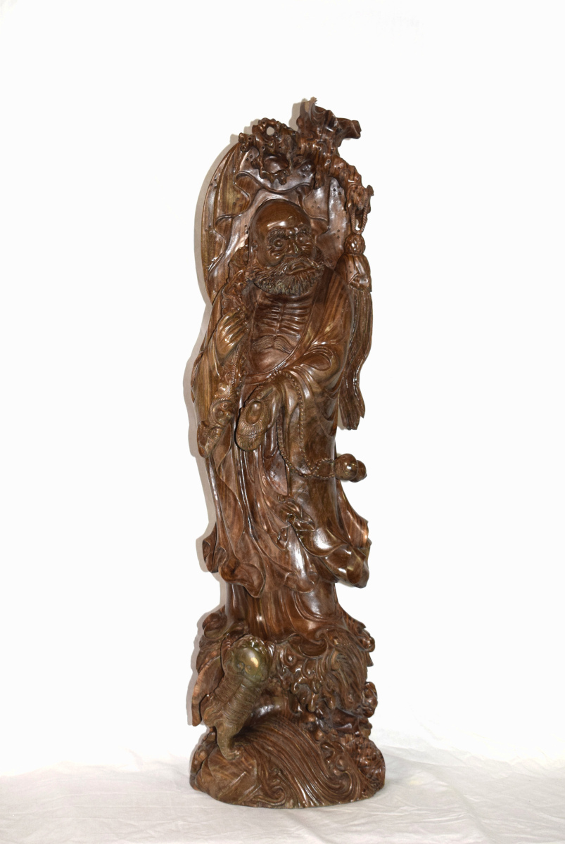 - 達磨大師 獅子 緑檀 彫刻 生命の木 (生命樹) 高さ約81㎝ 一本彫り 仏像 仏教美術 長期保管品 【sa1-1t-2】