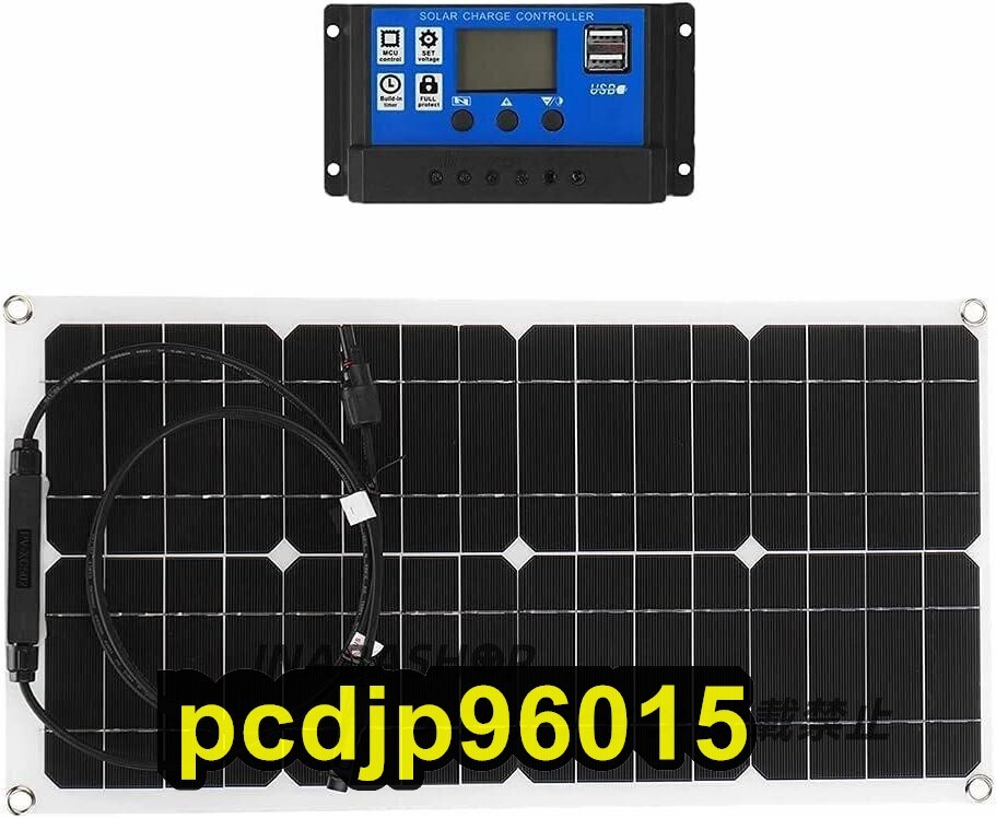 - 100W 18Vフレキシブルソーラーパネル高効率単結晶バッテリー充電器 30Aコントローラー付き 携帯電話コンピューターカー