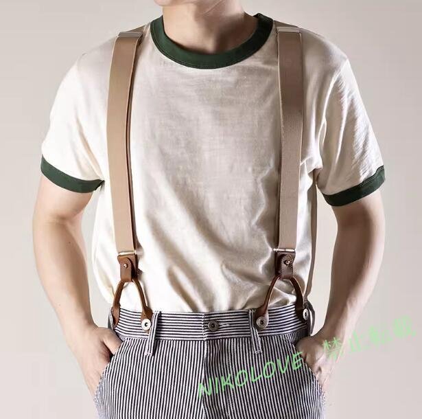 - 新品 オールド 復刻 本革 アメリカン レトロ クラシカル サスペンダーベルト 3色展開 レトロ ヴィンテージ レザー 吊りバンド スーツ