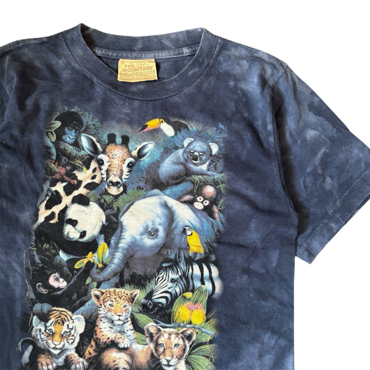 - 旧タグ【THE MOUNTAIN】ビンテージ アニマル柄 Tシャツ 古着 動物 00s Y2K キッズ シマウマ パンダ キリン ヒョウ トラ ゴリラ ウータン