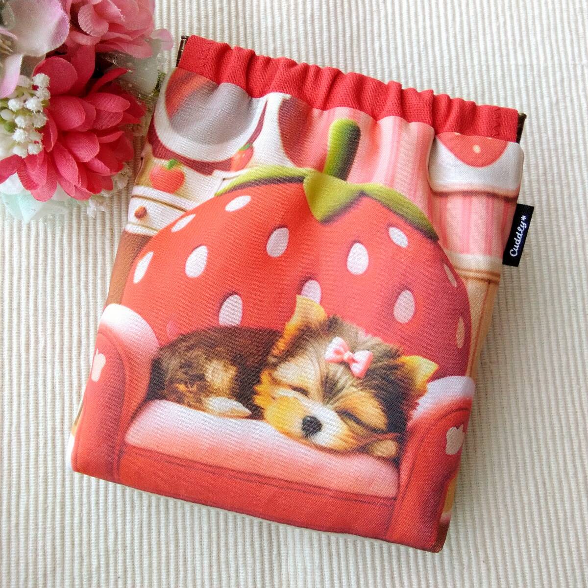 - ハンドメイド バネポーチ 苺ソファ ヨーキー パネル生地