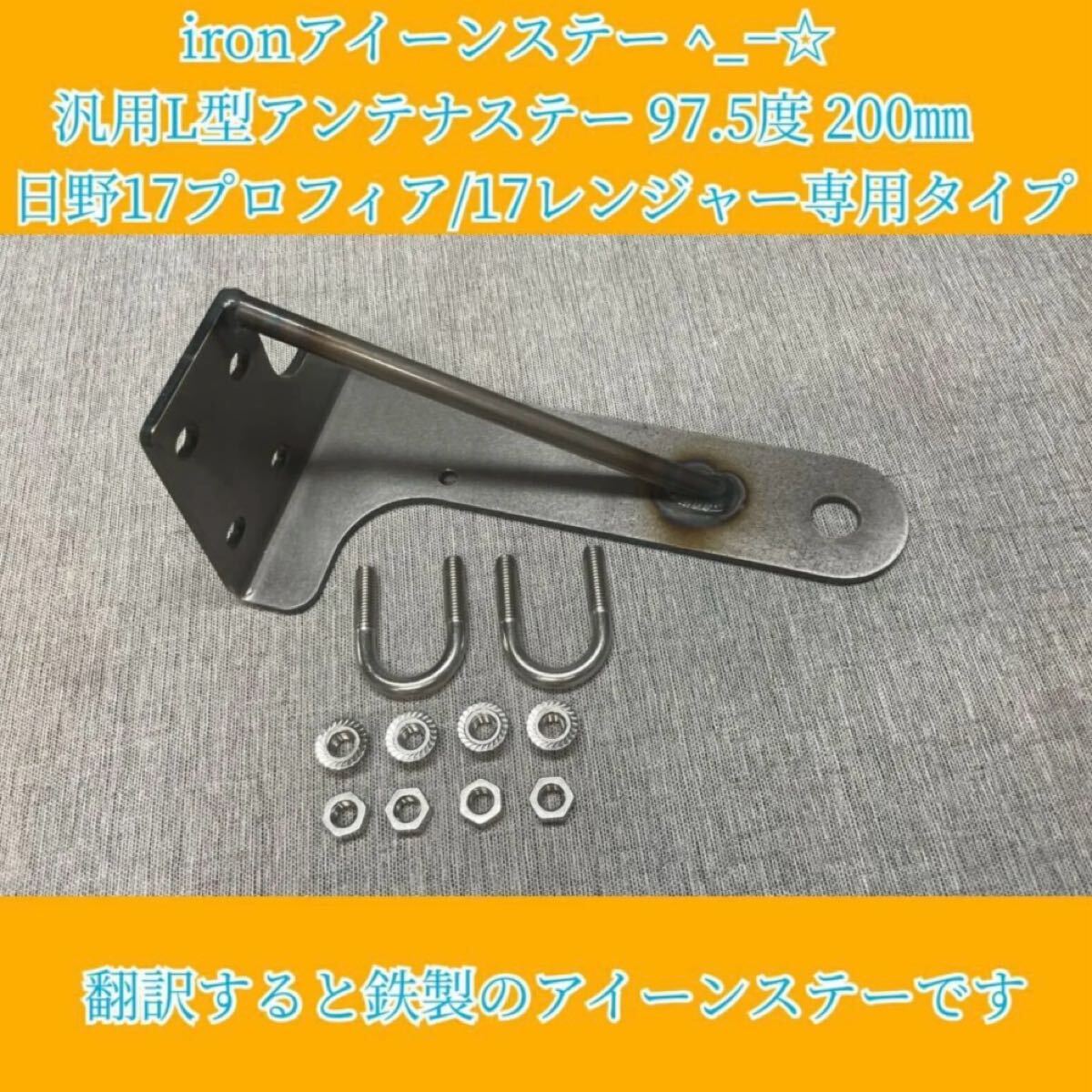 - ironアイーンステー ^_−☆ 汎用L型アンテナステー 97.5度 200㎜ 日野17プロフィア/17レンジャー専用タイプ
