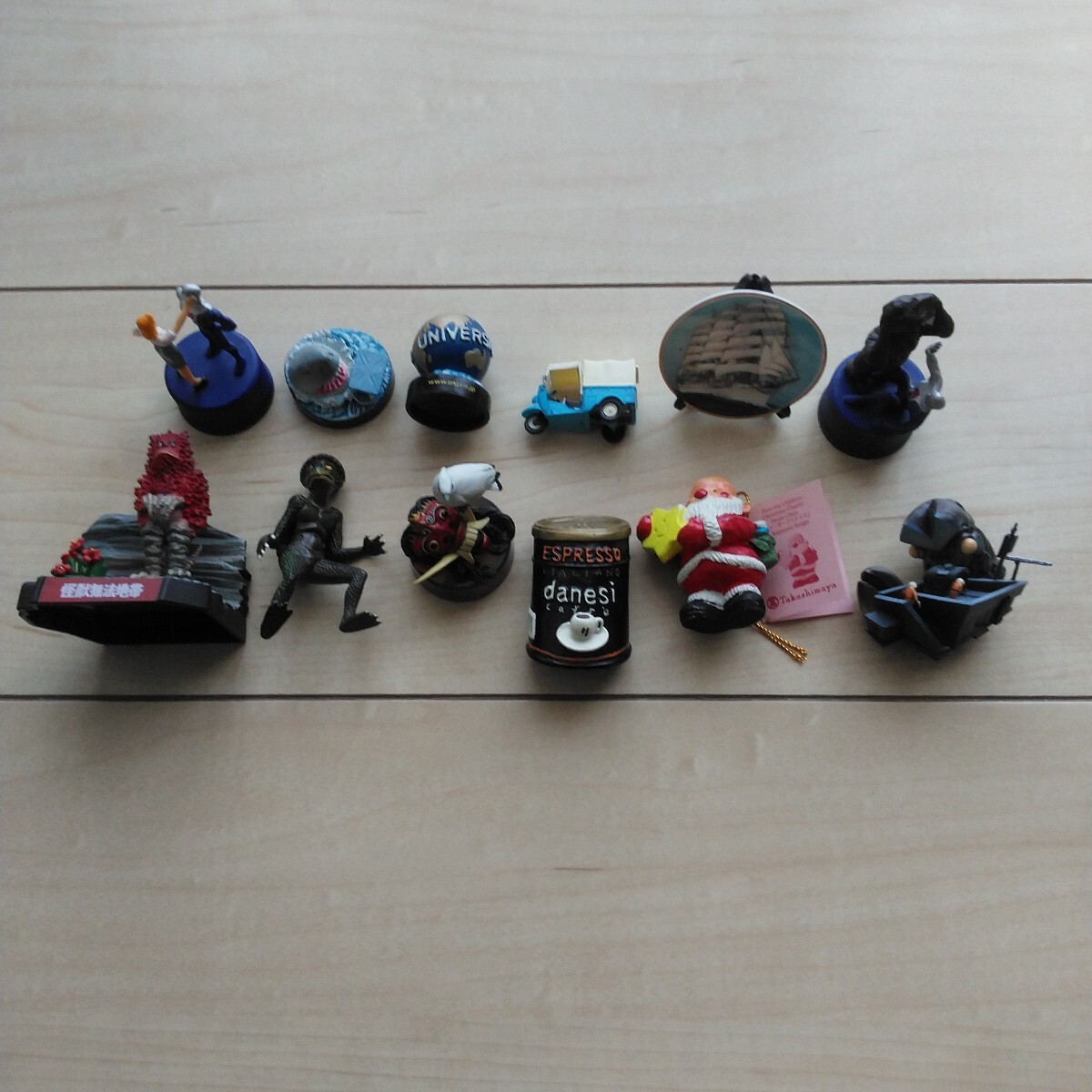 - ■御愛嬌出品『我楽多(小さなFigure等)』12点一括。Pepsi-Cola/ウルトラQ/河童/USJ/珈琲Espresso/ダイハツミゼット/Santa Claus等。