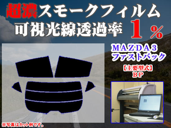 > マツダ MAZDA3 ファストバック ストロングスモーク 透過率1% 超濃黒ウィンドウフィルム カット済みカーフィルム