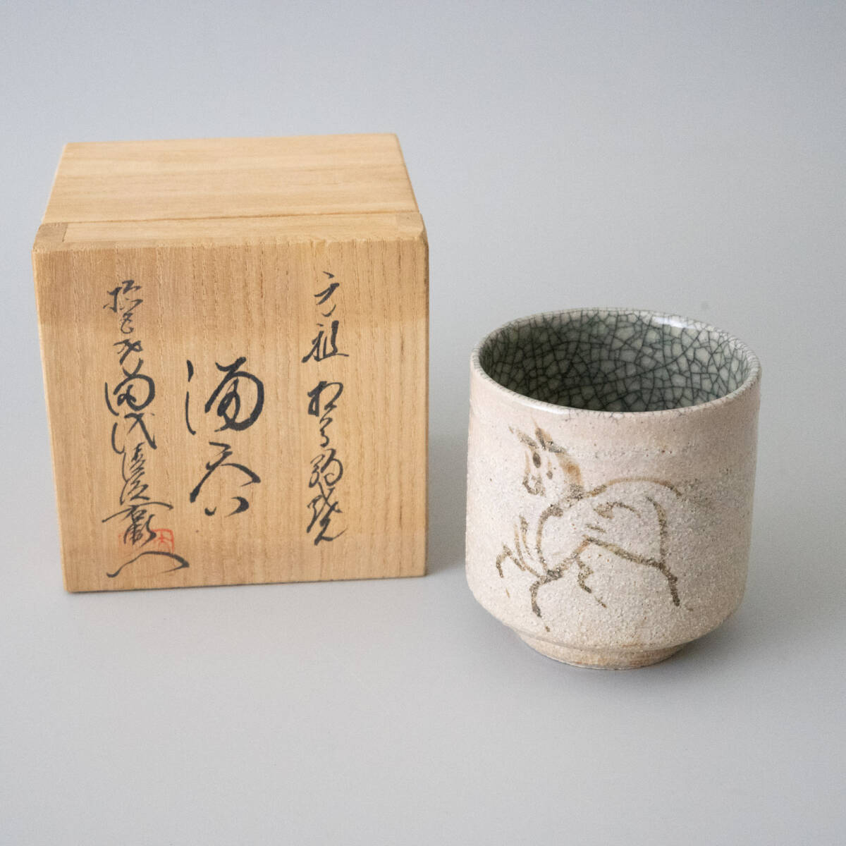 - 田代清治右衛門 (田代法橋) 作 十五世 相馬焼 走駒 酒器 猪口 相馬駒焼 大堀相馬焼 跳駒 盃 杯 ぐい呑 酒盃
