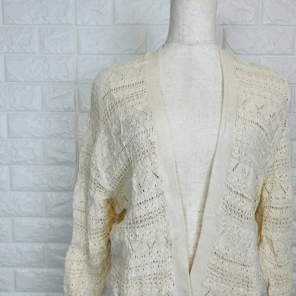 - 【A2943】PLST プラステ カーディガン レディース アイボリー 透かし編み レース風 きれいめ 上品 カジュアル ナチュラル 春夏 Mサイズ